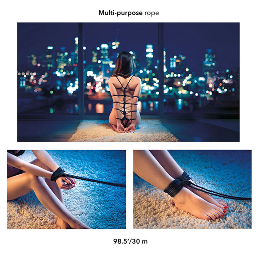 Entregue-se às suas fantasias BDSM e seja criativo com os 30 metros de corda BDSM Scandal®. Nossa premiada coleção Scandal® criou a corda sedosa e confortável para Shibari das suas fantasias mais selvagens, permitindo que você mergulhe fundo em brincadeiras de bondage infinitamente criativas. Entregue-se a um prazer elevado e aprimorado a cada volta e nó desta corda sedosa e fina. Enrole firmemente nos pulsos, amarre suavemente os tornozelos ou crie uma amarração shibari exclusiva no seu parceiro para uma experiência sensacional única. A corda sedosa é ideal para parceiros que buscam experiências com nós e contenção. Leve suas fantasias a um novo patamar e ao extremo com a corda BDSM infinitamente criativa.