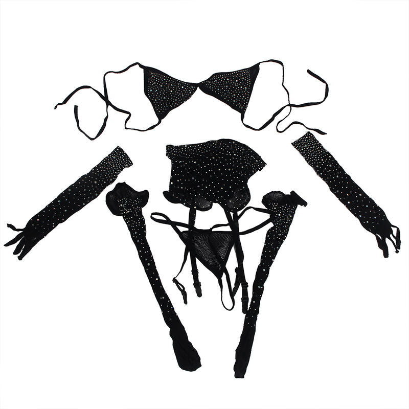 SUBBLIME - 952174 BODYSTOCKING DE REDE COM LUVAS E DIAMANTES PRETO TAMANHO ÚNICO