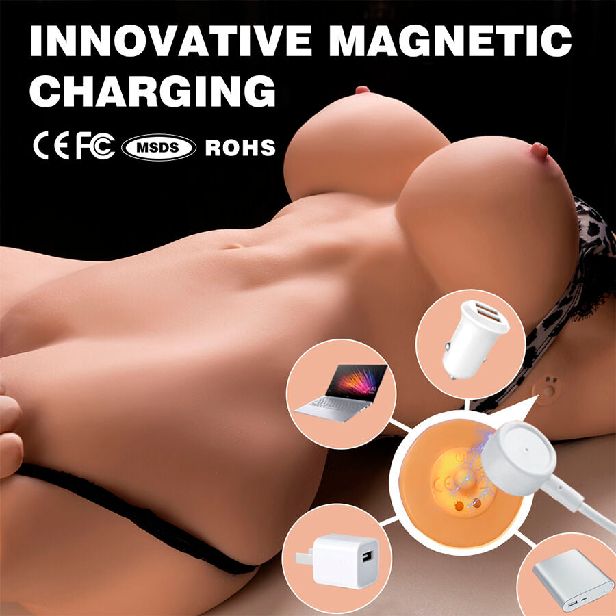 - Design hiper-realista com detalhes anatômicos: Este torso foi projetado para replicar fielmente a aparência e a sensação do corpo feminino. Sua estrutura inclui: Seios macios e moldáveis, que proporcionam uma experiência tátil prazerosa. Cintura definida e curvas naturais, proporcionando uma aparência realista. Lábios vaginais detalhados e uma entrada anal realista, com texturas internas projetadas para estimulação autêntica.